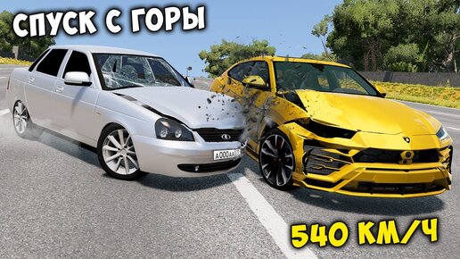 СПУСК С ГОРЫ БЕЗ ТОРМОЗОВ НА МАКСИМАЛЬНОЙ СКОРОСТИ В BEAM NG DRIVE
