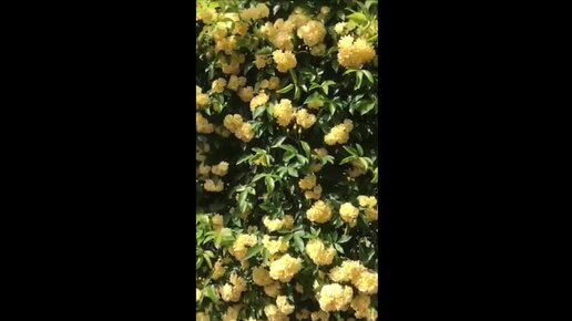 Роза Леди Бэнкс Лютеа желтая (Rosa banksiae 'Lutea') в живой изгороди