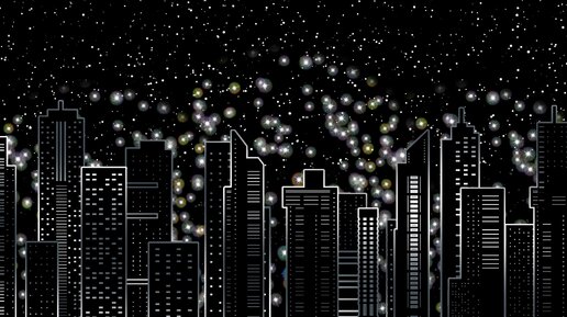 Анимация контуров зданий на фоне групп душ. Панорама города. Фон в 4K.