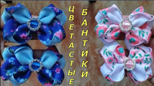 Цветастые бантики. Как сделать красивые бантики из репсовых лент с принтом.