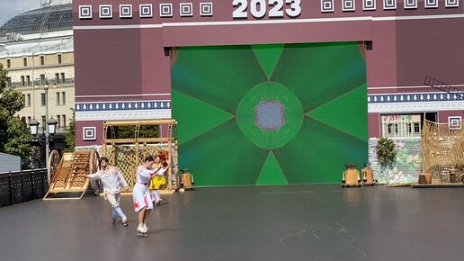 Фигуристы на роликах исполняют русские плясовые в центре Москвы прямо на улице. Зажгли ребята!