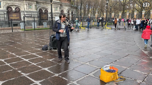 Уличный скрипач порадовал жителей и гостей Петербурга красивой игрой, исполнив популярную мелодию