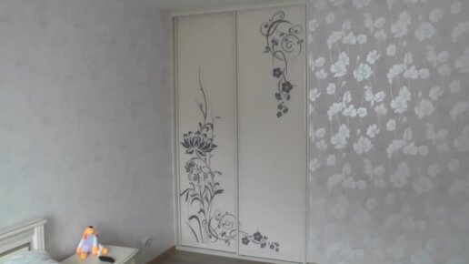 Встроенный шкаф-купе в спальню. Двери с рисунком. Система Браун.