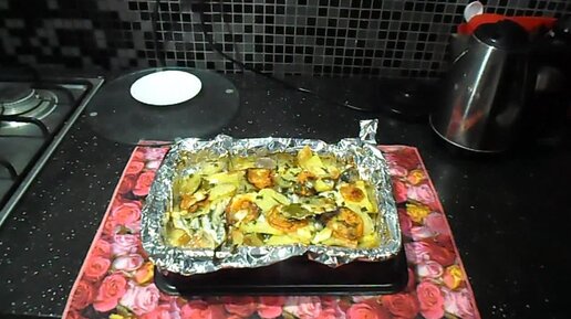 Тушёная мойва с картошкой в духовке .