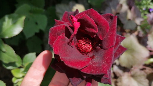 Бордовая роза с красными тычинками. Что это за сорт? Июнь 2023