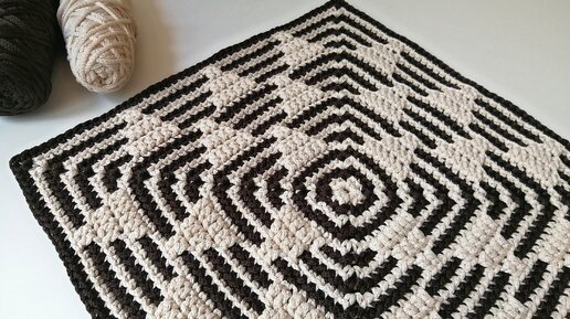 Идеальный узор для ковра, пледа, салфетки... Мозаика крючком из центра без схем...