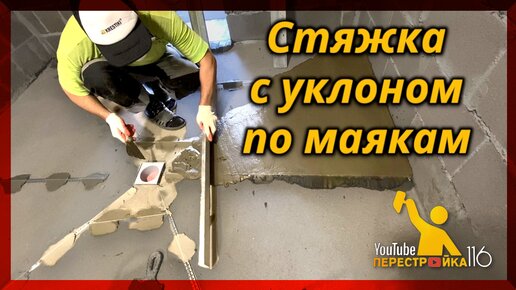 Заливаем стяжку с уклоном по маякам в душевой и сауне.