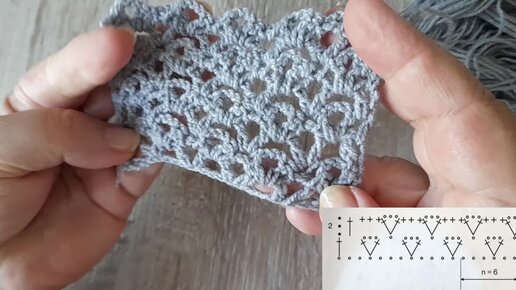 "УЗОРЫ КРЮЧКОМ" вязальный марафон. Простой узор пор схеме :1 ряд и 6 петель