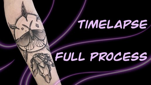 [TIMELAPSE] Тату «Бабочка и кристалл» фрихенд и процесс нанесения. Freehand and tattoo process