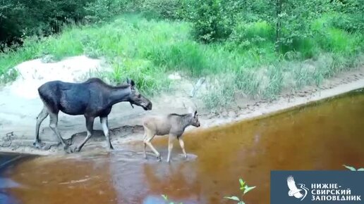 Милые кадры: прогулка мамы-лосихи с малышом попала на видео