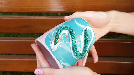 Аниме чашка с декором дракон Хаку из полимерной глины. Кружка с фигуркой ручной работы AnneAlArt