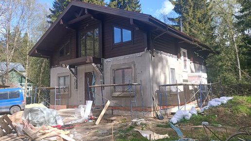 Штукатурка без утепления фасадов дома, построенного из тёплой керамики Porotherm, декоративные элементы пенопласт ППС16ф СФТК Мокрый Фасад