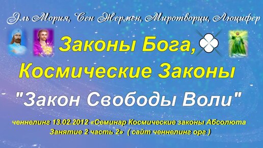Ченнелинг Эль Мория, Сен Жермен, Миротворцы, Люцифер "Закон Свободы Воли" Семинар Космические законы Абсолюта 13.02.2012 занятие 2 часть 2