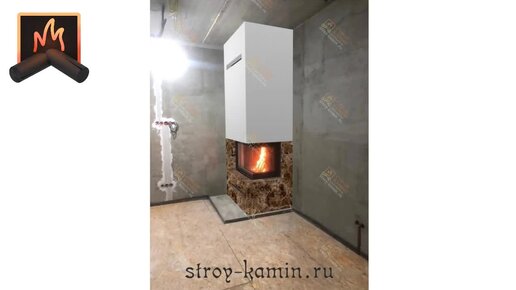 Дровяная топка АСТОВ П2С 8457 в пристенно-угловом авторском камине из мрамора, в КП Федоськино Парк, от мастеров компании Строй-Камин