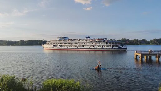 Теплоход Михаил Танич покидает причал в Рыбинске.