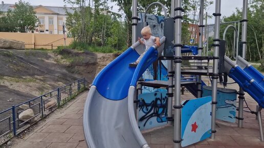 Гришка катается на горках в свои почти 20 месяцев