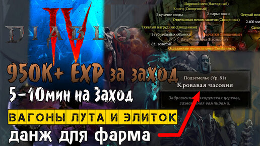Диабло 4 | 10 МИЛЛИОНОВ ЕХР в час | Вагоны Лута и Экспы для Соло и Группы | Кровавая Часовня