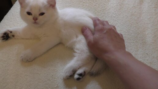 Котенок лежит на кровати. Хороший такой
