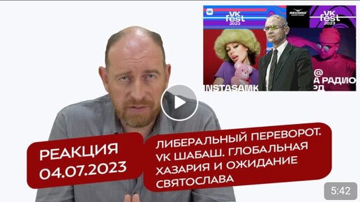 Спецпроект "Реакция" от 4.07.2023 Либеральный переворот. VK ш@баsh. Глобальная Хазария и ожидание Святослава