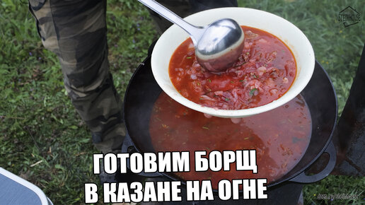 Готовим борщ в казане на огне