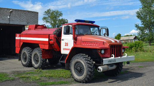 Пожарная автоцистерна АЦГ-5-375 на шасси Урал-375Е. 54 года машине! Звук двигателя ЗИЛ-375. / The old Soviet truck URAL-375E.
