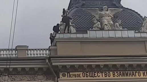 На Грибоедова, 13 заметили подростков, которые ходили по фасадам Санкт-Петербургского общества взаимного кредита