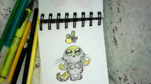 Монстрик и светлячок. Рисунок цветными карандашами