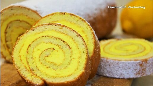 Бисквитный рулет с лимонной начинкой Получается Всегда!