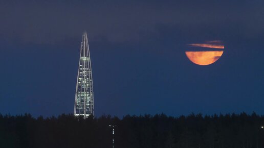 ГРОЗОВОЕ СУПЕРЛУНИЕ У «ЛАХТА ЦЕНТРА»