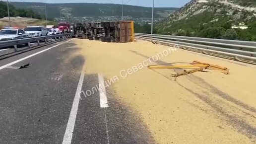 Фура с зерном перевернулась на дороге Севастополь – Инкерман, движение ограничено