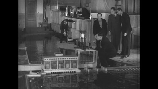 Испытание макета плотины для Верхне-Свирской ГЭС в Политехе. 1941 год