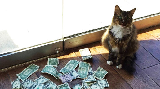 После появления кота у двери офиса ежедневно появлялись деньги. Установив камеру хозяин фирмы понял,что их бросают любящие животных прохожие