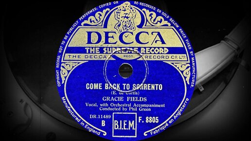 COME BACK TO SORRENTO - GRACIE FIELDS with Orchestral Accompaniment Conducted by Phil Green (1947)