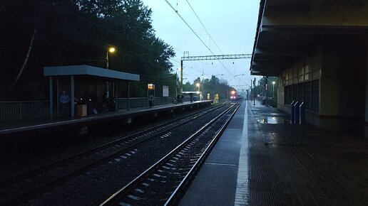 Электровоз ЭП2К с пассажирским поездом и электропоезд ЭД2Т-0050 разъезжаются по платформе Чертаново