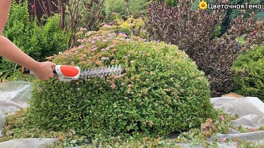 🌱Стрижка спирей после цветения небольшим кусторезом, наглядно. Спиреи Little Princess и Golden Princess до и после стрижки.
