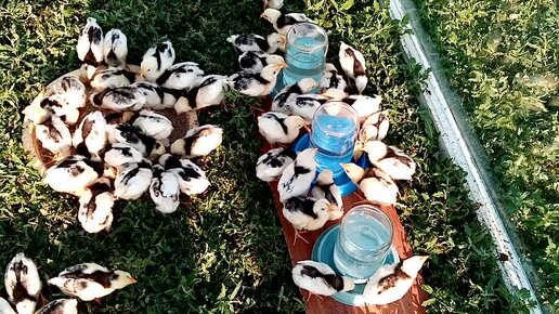 Завтрак цыплят на траве!! Цыплята Пушкинской породы!!!