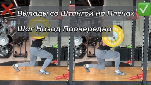 Выпады со Штангой на Плечах Шаг Назад Поочередно