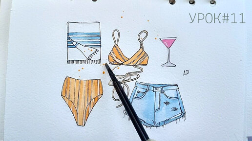 Рисуем пляжный набор акварелью. Урок пошагово!!