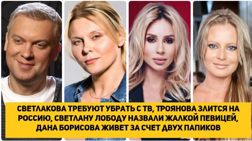 Светлакова требуют убрать с ТВ, Троянова злится на Россию, Светлану Лободу назвали жалкой певицей, Дана Борисова живет за счет двух папиков