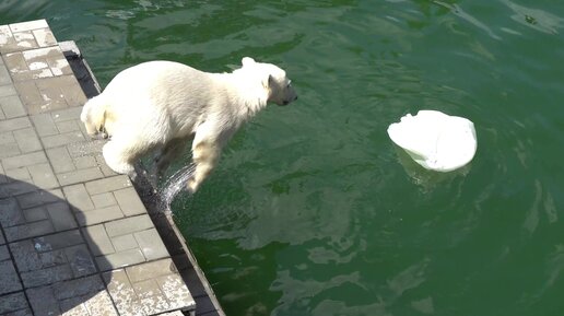 Медвежонок Стрелка в бассейне с канистрой. 03.07.2023