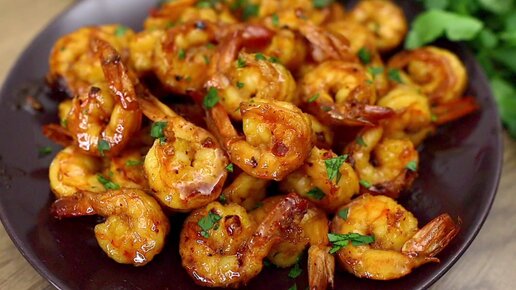 Жареные креветки в соевом соусе с чесноком! Креветки на сковороде