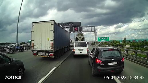 Маленький "Ниссан" против обочечника на юго-востоке КАД