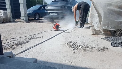Дошёл до подводки электричества откатных ворот мешают при укладке. Плитка. Решил заштробить. Прятать их в бетон.