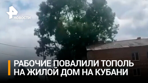 "А я вам, пацаны, говорил, что это так и будет": рабочие повалили тополь на жилой дом на Кубани