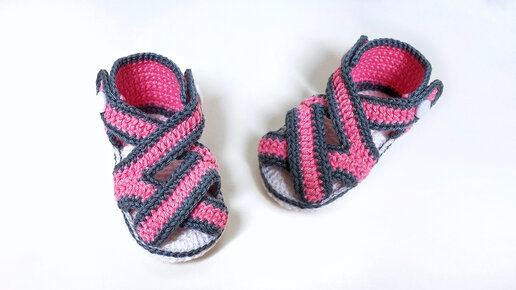 Красивые пинетки сандалии крючком/ пинетки вязаные крючком/ подошва 11 см.