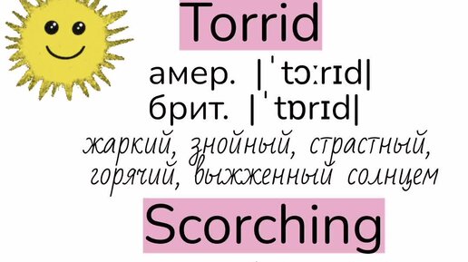 Words related to hot/слова, близкие по значению к слову hot (горячий)👉torrid, scorching, blazing, sizzling 👇Примеры👇