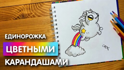 Рисунок цветными карандашами "Радужная единорожка" | Поэтапная срисовка для начинающих