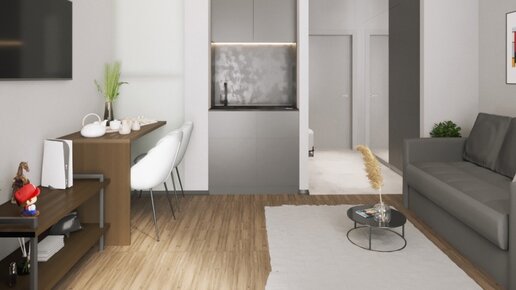 Студия-кроха на 21м² с неплохим функционалом и отдельной спальней.