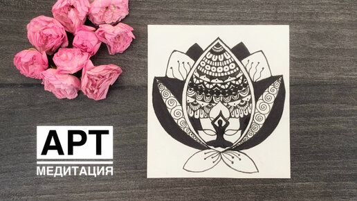 Поза лотоса в лотосе | Медитативное рисование, чтобы снять стресс и отдохнуть | Магия чёрных линий 🌸