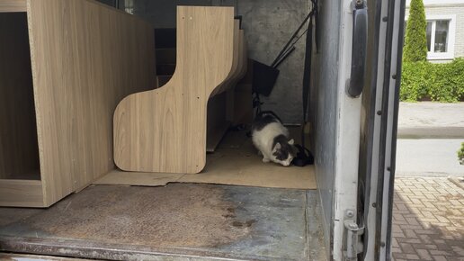 Велес забрался в грузовик к рабочим. Шанель уплетает остатки от пирога. Синхронное умывание 😅